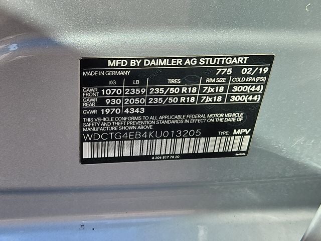 18 5-Spoke Aluminum Wheels, 8 Color Display Upgrade, ABS brakes, Air Conditioning, Alloy wheels, AM/FM radio, Automatic temperature control, Brake assist, CD player, Child-Seat-Sensing Airbag, Delay-off headlights, Dual front impact airbags, Dual front side impact airbags, Electronic Stability Control, Emergency communication system: mbrace, Exterior Parking Camera Rear, Front Bucket Seats, Front dual zone A/C, Front fog lights, Fully automatic headlights, Illuminated entry, Memory seat, Outside temperature display, Panic alarm, Power door mirrors, Power driver seat, Power Liftgate, Power passenger seat, Power Passenger Seat w/Memory, Power windows, Radio: Audio System w/Garmin Navigation Pre-Wiring, Rain sensing wipers, Remote keyless entry, Security system, Single CD Player, Speed control, Speed-sensing steering, Steering wheel mounted audio controls, Traction control, Variably intermittent wipers, 4-Way Lumbar Support, 4-Wheel Disc Brakes, 8 Speakers, Axle Ratio: 4.60, Bumpers: body-color, Driver door bin, Driver vanity mirror, Four wheel independent suspension, Front anti-roll bar, Front Center Armrest, Front Power Seats, Front reading lights, Heated door mirrors, Knee airbag, Low tire pressure warning, MB-Tex Upholstery, Occupant sensing airbag, Overhead airbag, Overhead console, Passenger door bin, Passenger vanity mirror, Power Driver Seat w/Memory, Power steering, Radio data system, Rear anti-roll bar, Rear fog lights, Rear reading lights, Rear seat center armrest, Rear window defroster, Rear window wiper, Roof rack: rails only, Split folding rear seat, Spoiler, Tachometer, Telescoping steering wheel, Tilt steering wheel, Trip computer, Turn signal indicator mirrors, and Weather band radio.