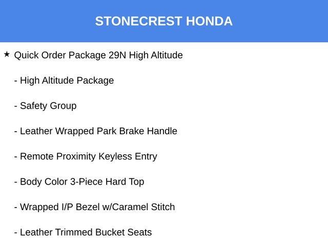 **BACKUP CAMERA**, **NAVIGATION SYSTEM**, **Bluetooth®**, USB CHARGING PORTS, **LOCAL TRADE**, **SUPER CLEAN**, Stonecrest Honda Home of the LIFETIME WARRANTY*, **CUSTOM WHEELS**, **STILL UNDER FACTORY WARRANTY**, **LOW MILES**, **Push-Button START!**, 4-Wheel Disc Brakes, ABS brakes, Adaptive Cruise Control w/Stop, Advanced Brake Assist, Advanced Safety Group, Air Conditioning, Alloy wheels, AM/FM radio, Apple CarPlay/Android Auto, Auto High Beam Headlamp Control, Auto-dimming Rear-View mirror, Automatic temperature control, Blind Spot & Cross Path Detection, Blue Tow Hooks, Body Color 3-Piece Hard Top, Body Color Door Handles, Body Color Exterior Mirrors, Body Color Front Bumper, Body Color Grille w/Gloss Black Rings, Body Color Power Locking Fuel Filler Door, Body Color Rear Bumper w/Step Pads, Brake assist, Caramel Interior Accents, Cold Weather Group, Compass, Delay-off headlights, Dual front impact airbags, Dual front side impact airbags, Electronic Stability Control, Emergency communication system: SiriusXM Guardian, Front dual zone A/C, Front fog lights, Full Speed Forward Collision Warning Plus, Fully automatic headlights, Heated door mirrors, Heated Front Seats, Heated Steering Wheel, High Altitude Package, Leather steering wheel, Leather Trimmed Bucket Seats, Leather Trimmed Seats w/Sahara Logo, Leather Wrapped Park Brake Handle, MOPAR All-Weather Floor Mats (DISC), Navigation System, Outside temperature display