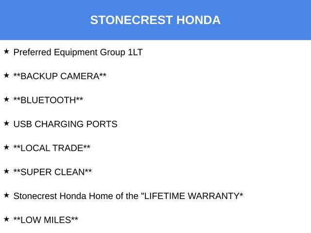 - Stonecrest Honda Home of the "LIFETIME WARRANTY*